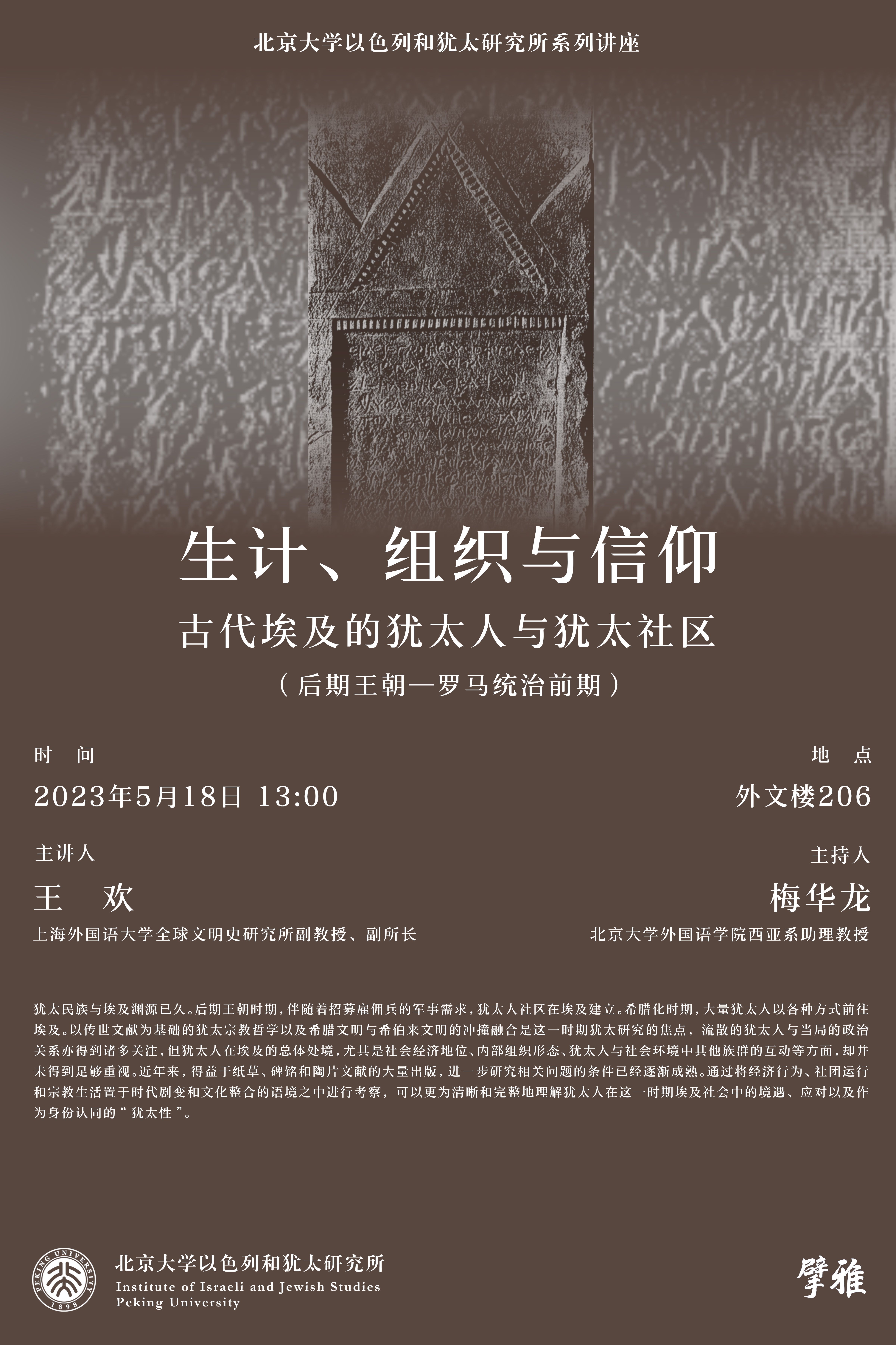 北京大学以色列和犹太研究所系列讲座:生计、组织与信仰
