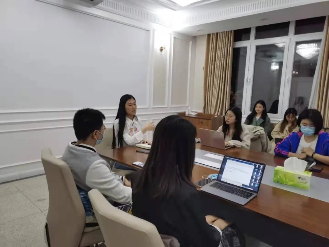 李昱璇同学发表自己对党史学习的见解,她表示,建党初期的历史,即在复杂的历史条件,党如何选择一条正确的发展道路,是最吸引自己的一段历史,卢敏老师建议她在下次的学习活动中结合该主题为大家讲一堂党课。