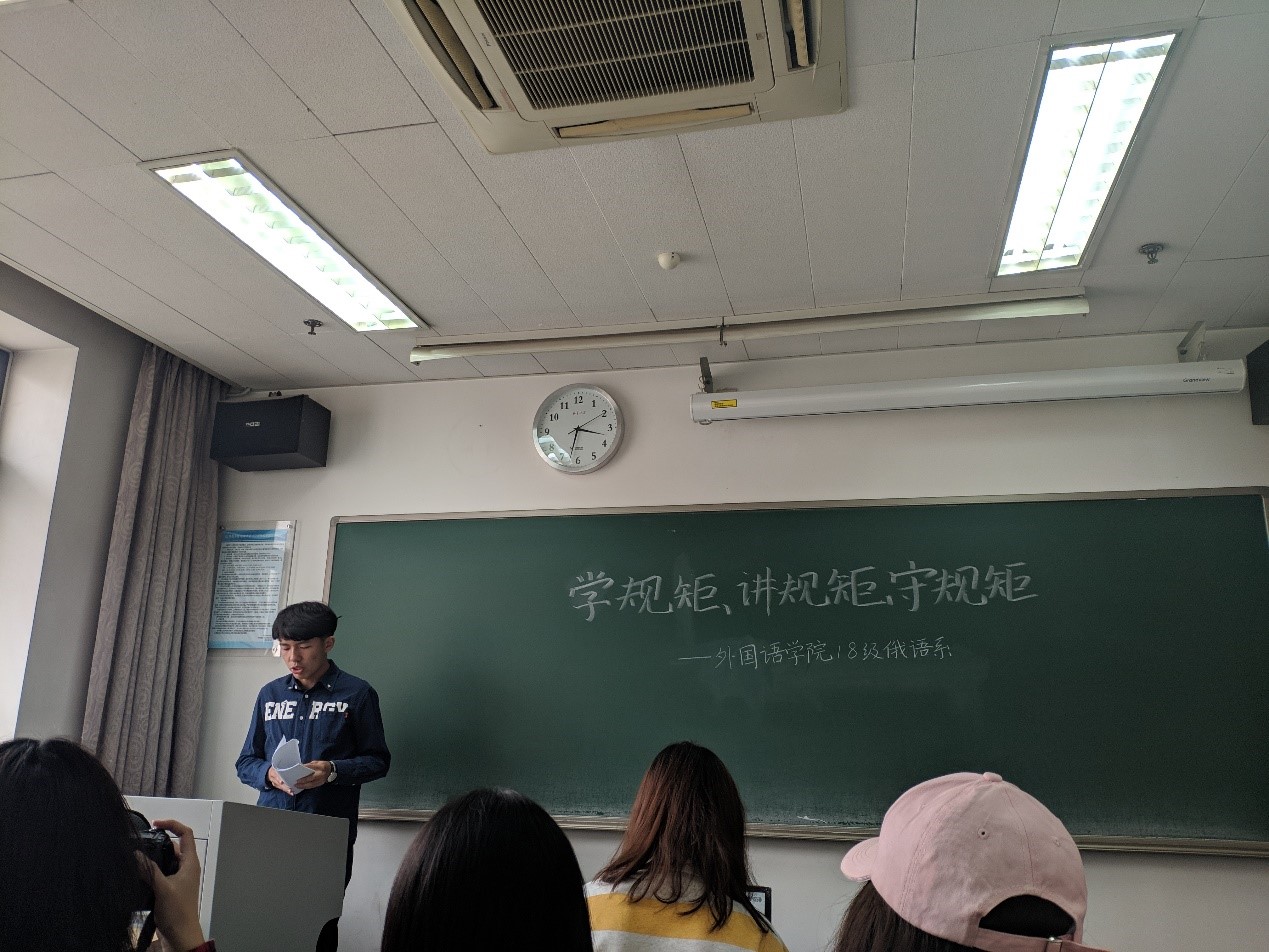 米兰官方网站,米兰milan(中国)2018级俄语专业本科生举办 “学规矩、讲规矩、守规矩”主题班会