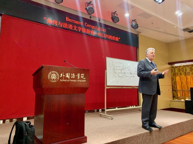 贝尔纳•塞克利尼曾任“法语全球大学联盟”主席,第二届CCTV全国法语大赛法方评委主席(中方评委主席为法语系董强老师)。退休后成为法国电视五台(TV5)一个著名法语教学节目的主持人。他本人就是少数仅存的“乌利波”组织的成员,此次作为“2019中国法语月”的重要嘉宾来华。此次在北大外院法语系的工作坊是其日程的重要组成部分。