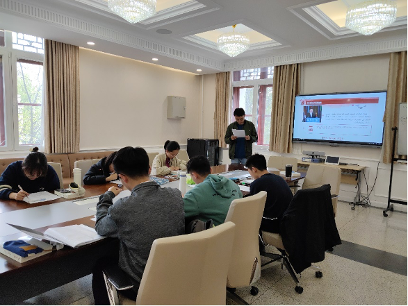 第二次读书会上,李睿恒为阿拉伯语班的读书会选定了《文明因交流而多彩,文明因互鉴而丰富》。领读人首先与同学们对不同文明间的交流和互动进行了探讨。中阿双方长期交好,悠久的历史积淀了灿烂的文明,在历史长河中各自辉煌又交相辉映。回首过去,展望未来,交流和互鉴将为中阿双方的持续发展提供强劲助力。之后领读人带领大家朗读了所选篇目,在语言中将思想内化于心。最后,领读人向同学们讲解了选读篇目中的阿拉伯语词汇,鼓励同学们用外语向其他文明讲清楚“人类命运共同体”、“和而不同”等中华文明中的政治概念。