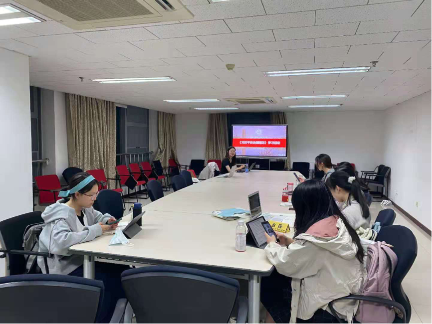胡光玥同学领读的俄语读书会选取了两篇文章,分别是《更好统筹国内国际两个大局,夯实走和平发展道路的基础》、《走出一条和衷共济、合作共赢的新路子》,俄语系2020级本科生班主任尹旭也参与了活动。领读人对两篇文章进行了深入讲解,并带领学生们朗读了文章中的精彩段落。在这一过程中,走和平发展道路、和平共处五项原则、独立自主的和平外交政策、主权、安全、发展利益等一系列时政热词都为学生们理解并记忆。在集体讨论环节,读书会就“中国为什么提出要走‘和平发展道路’”这一问题进行了深入探讨,学生们认识到和平是世界发展的趋势与世界人民的呼声,而中国在这一进程中展现了负责任的大国形象。