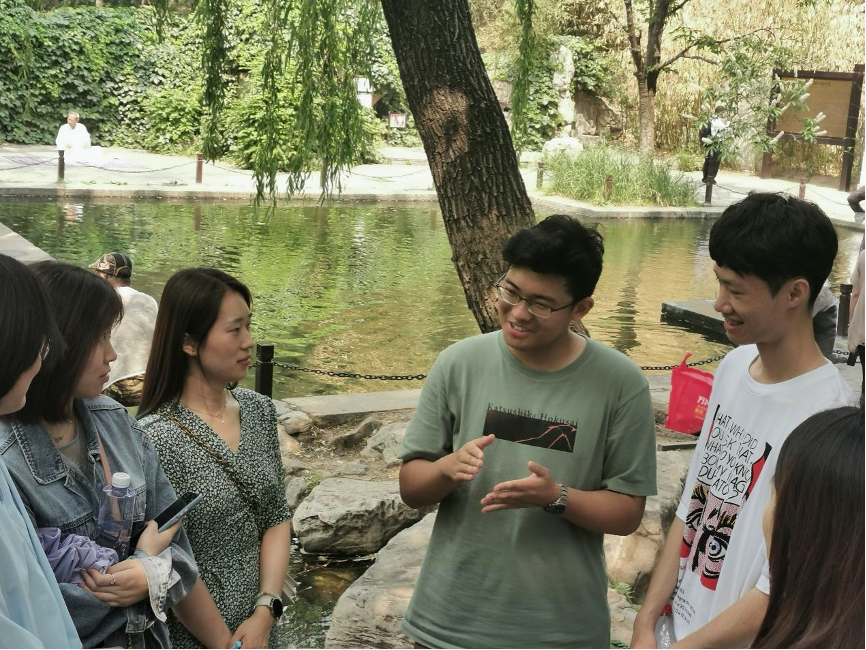 随后,同学们在公园中的中华名亭园里进行了集体研讨,深入学习了高君宇烈士作为北大优秀共产党员的先进事迹。多位同学向大家分享了自己的看法。廖辛尧同学认为,当烈士的肉体生命消殒之时,他们的精神生命——为祖国、为共产党、为中华民族奉献一切的精神——应当是不朽的。高君宇坚定的革命斗志和生如闪电、死如彗星的传奇人生,值得我们追思缅怀。