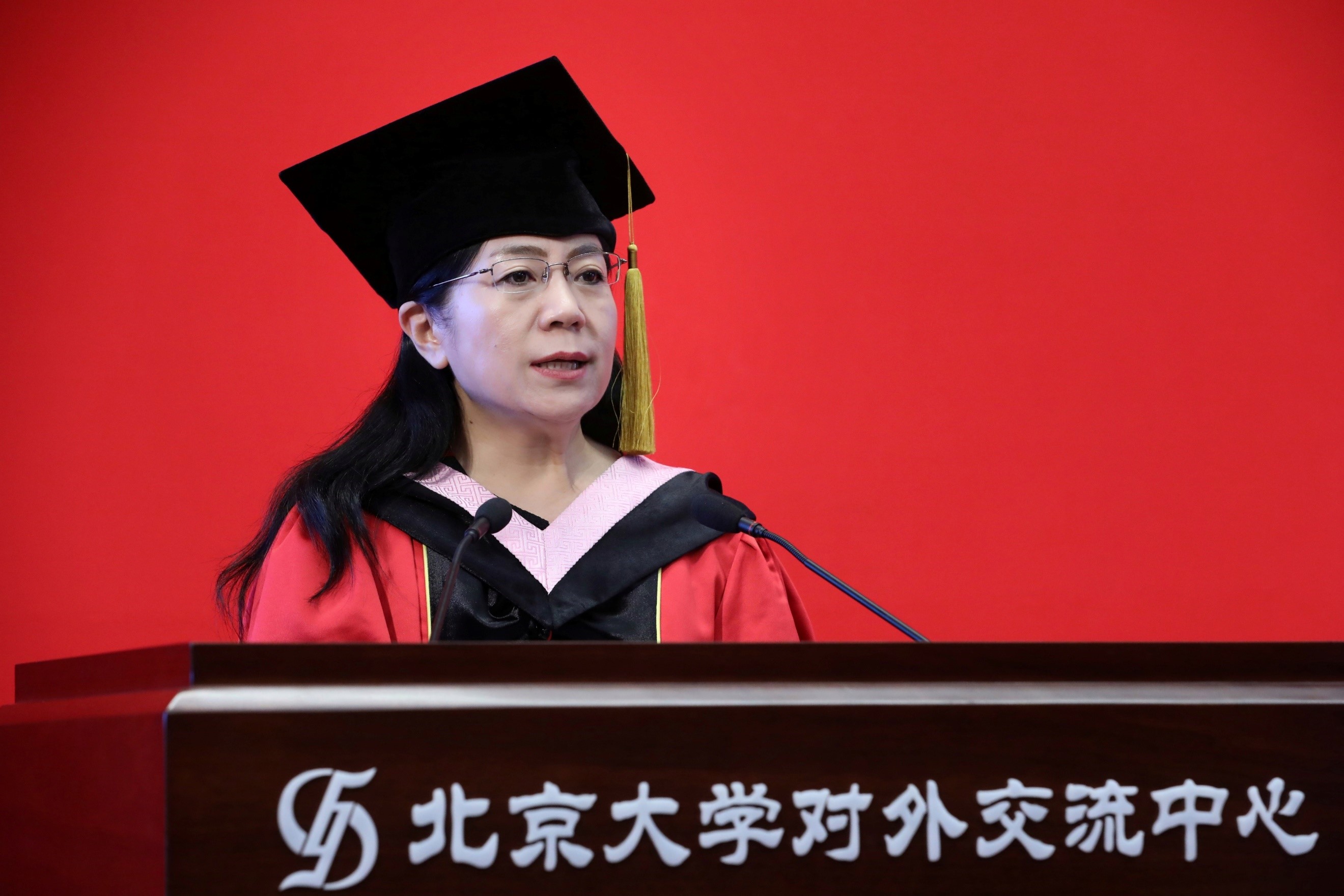 2017级俄语系本科生王佳晨作为本科毕业生代表发言。她回顾了四年前选择北大外院的初心,四年来“冬练三九夏练三伏”积累的专业素养,将语言投入实践时的使命感,以及师长和同伴们相互支持的温暖,让她获得了继续前进的动力和勇气。毕业,是起点,也是终点,她将始终感谢并铭记北大外院带给她的滋养和老师们的恩情,在追梦的道路上继续努力前行。
