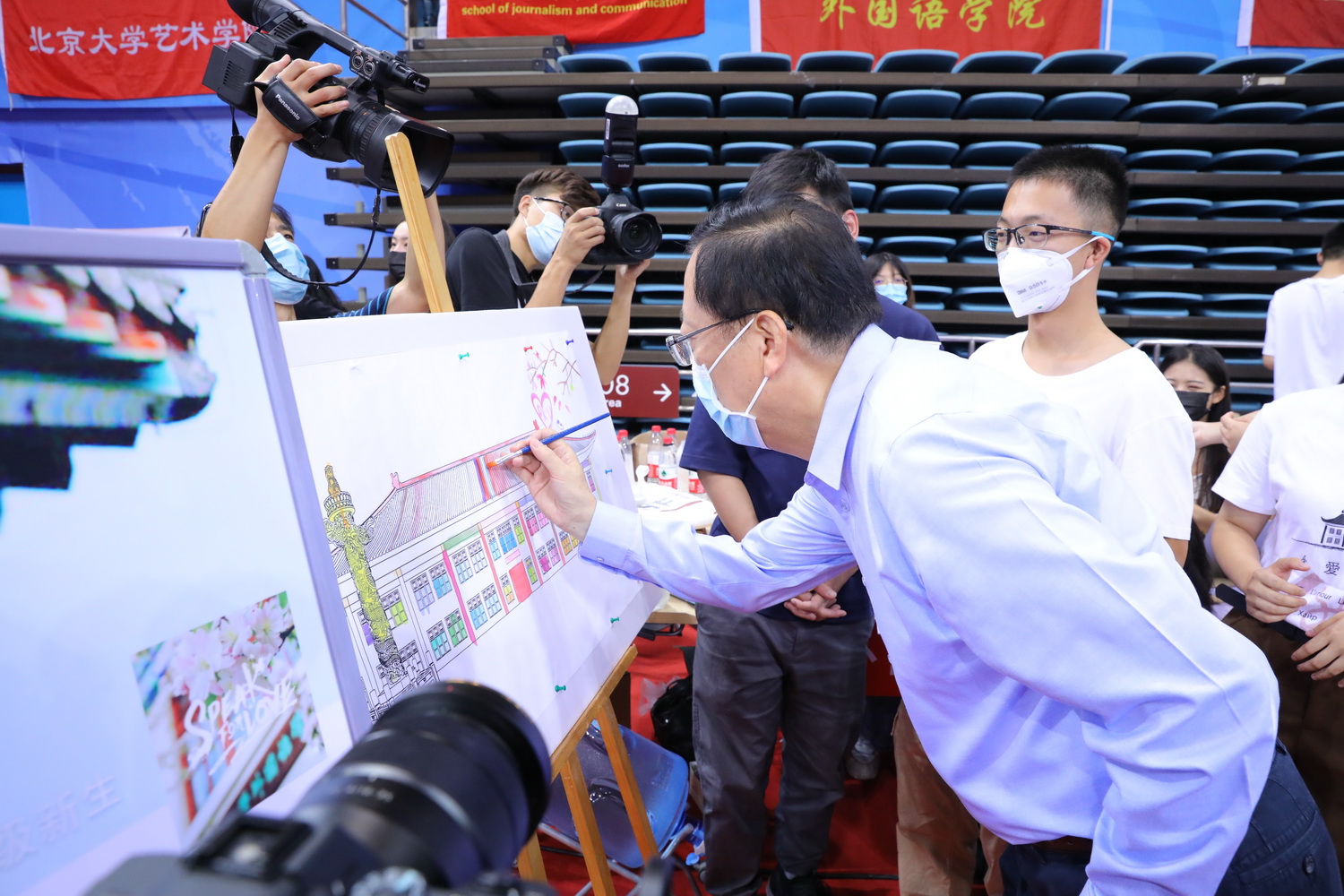 当天上午,校党委书记邱水平一行来到米兰官方网站,米兰milan(中国)迎新接待站关心迎新工作。邱水平在迎新展台前与师生亲切交谈,询问了迎新的情况,并同迎新接待站的师生们合影留念。郝平校长一行来到米兰官方网站,米兰milan(中国)迎新接待站关心新生报到情况。郝平亲切询问新生基本情况,鼓励新生尽快适应大学生活,努力学习。郝平还应志愿者的邀请,在外文楼的画板上画下一笔,送上对外院新生的祝福。