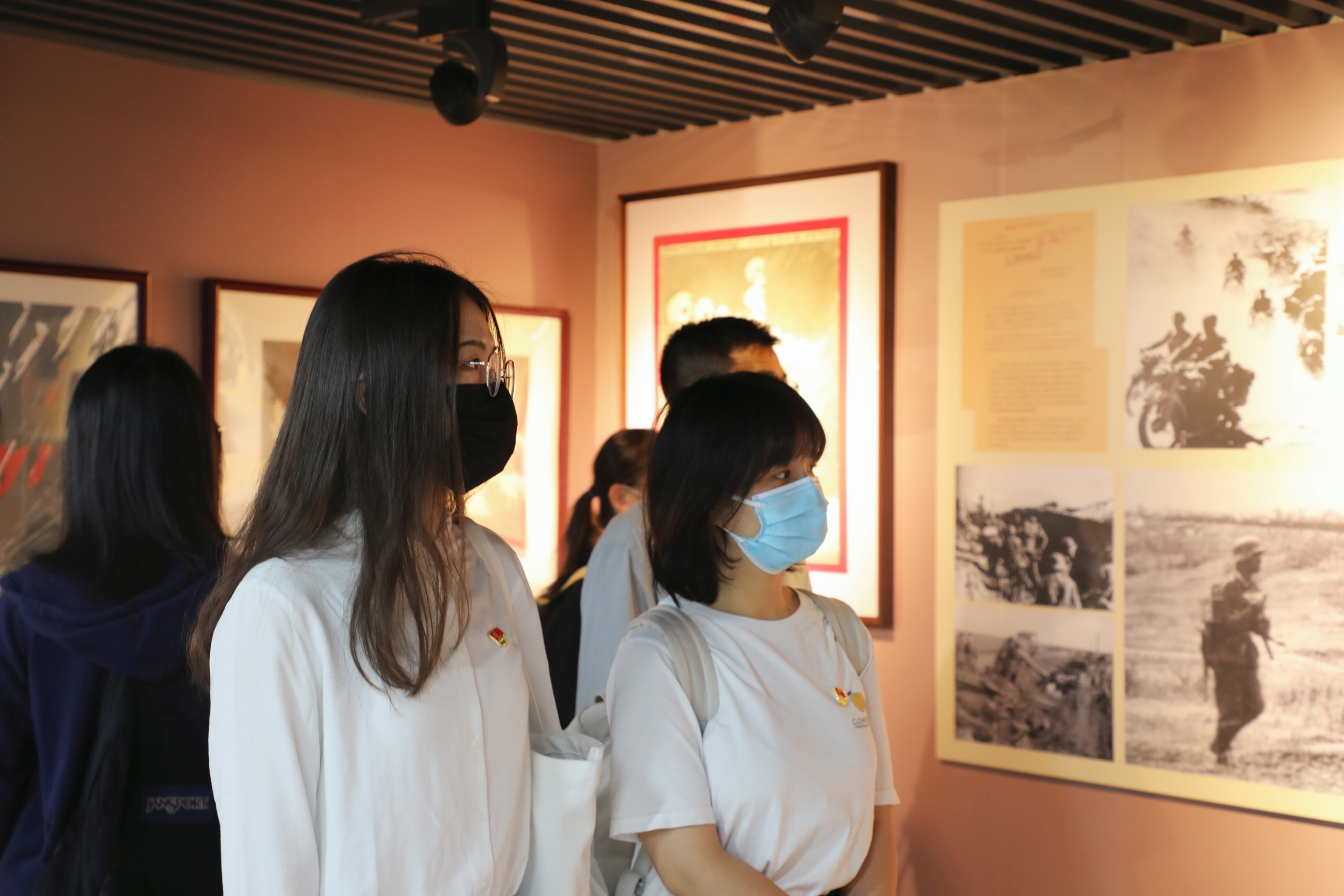 同一时间,辅导员杨轶佳老师和21级新生骨干在讲解员的引导下参观了“伟大胜利,历史贡献”基本陈列和“中流砥柱——中国共产党抗战文物展”。面对一张张还原真相的照片与一件件重现历史的文物,师生们肃然起敬、驻足瞻仰,内心波澜澎湃,倍受伟大抗日精神与国家危难关头共产党人舍小家、为大家的献身精神之感召,树立起更加坚定的理想信念。