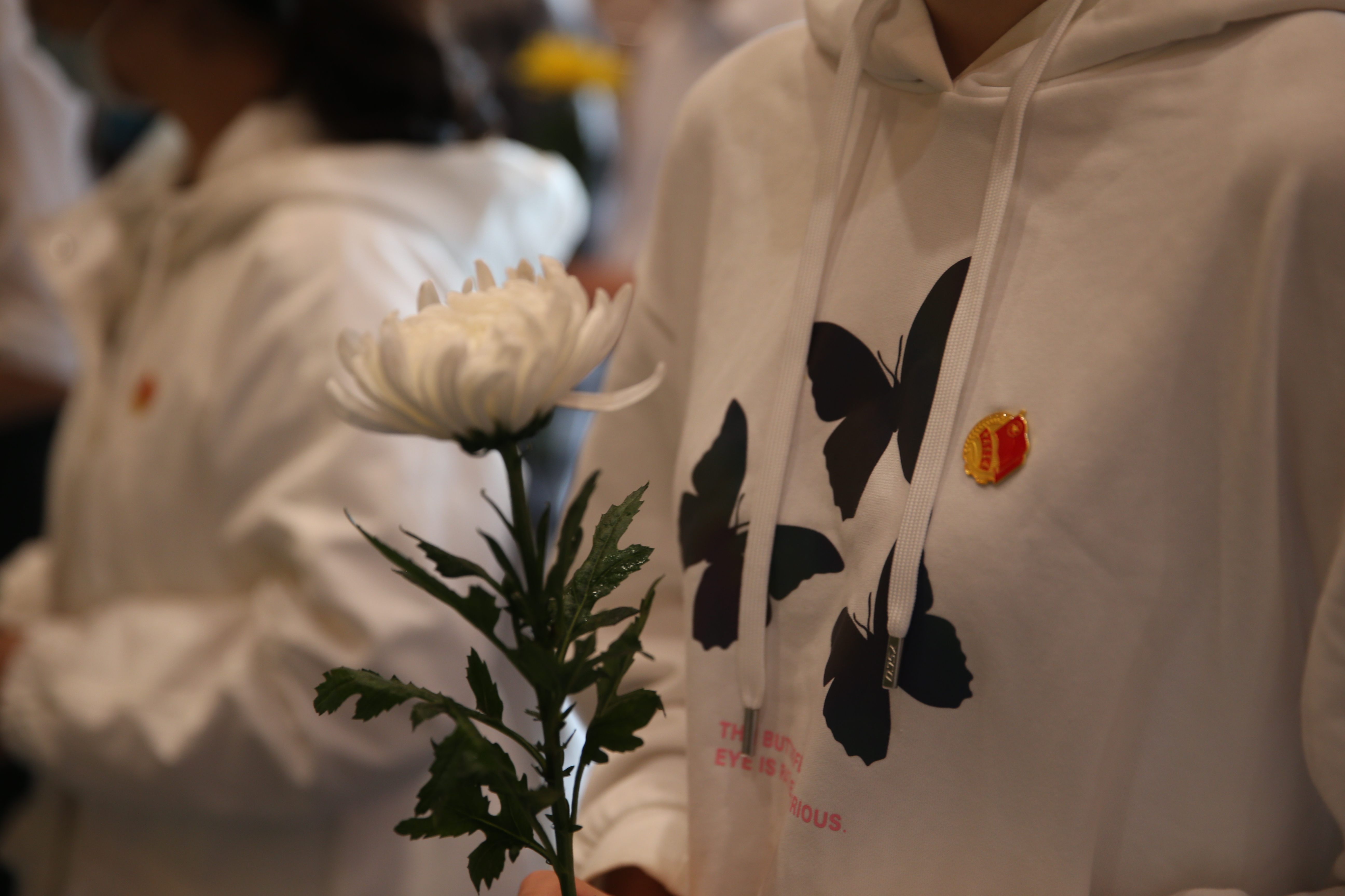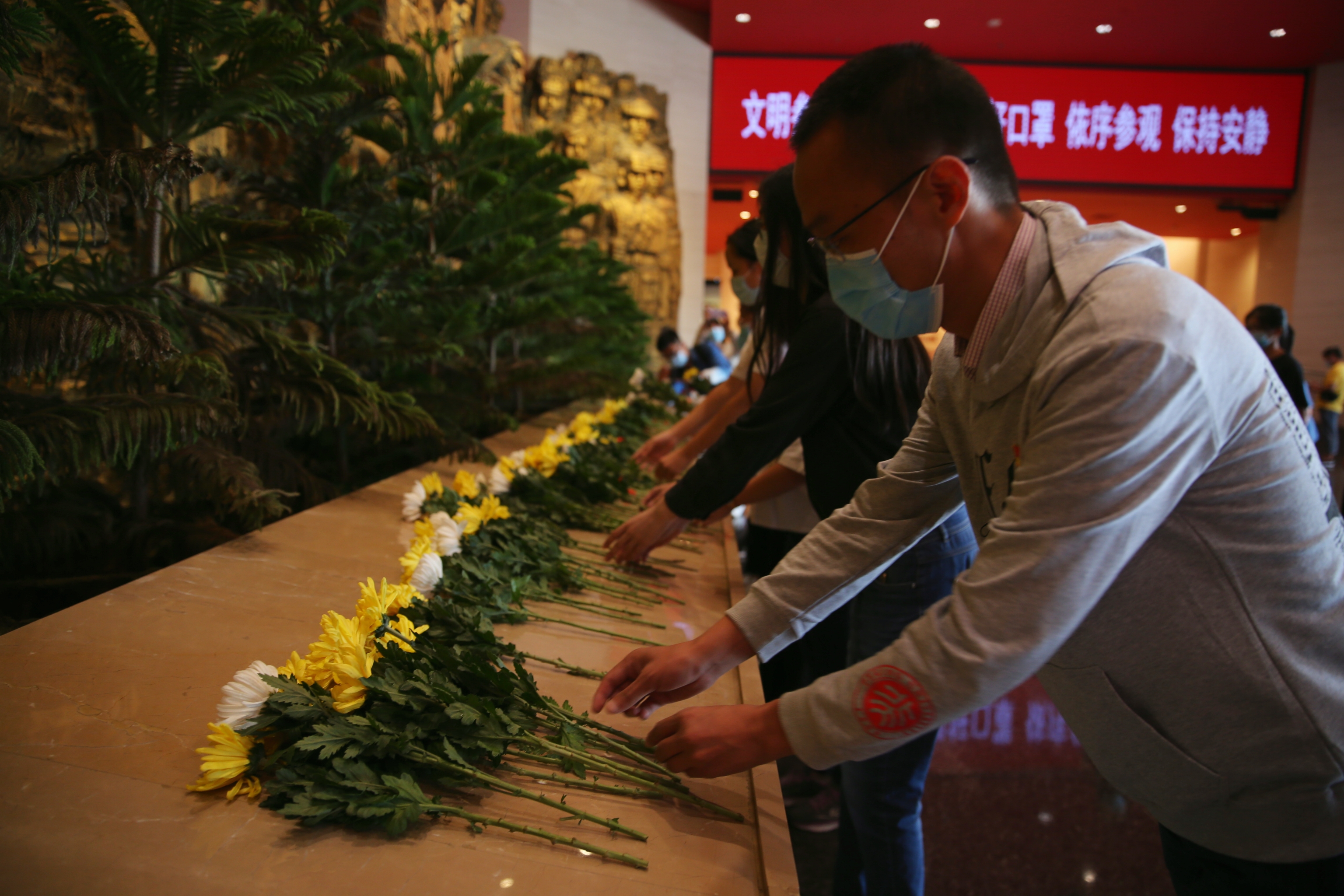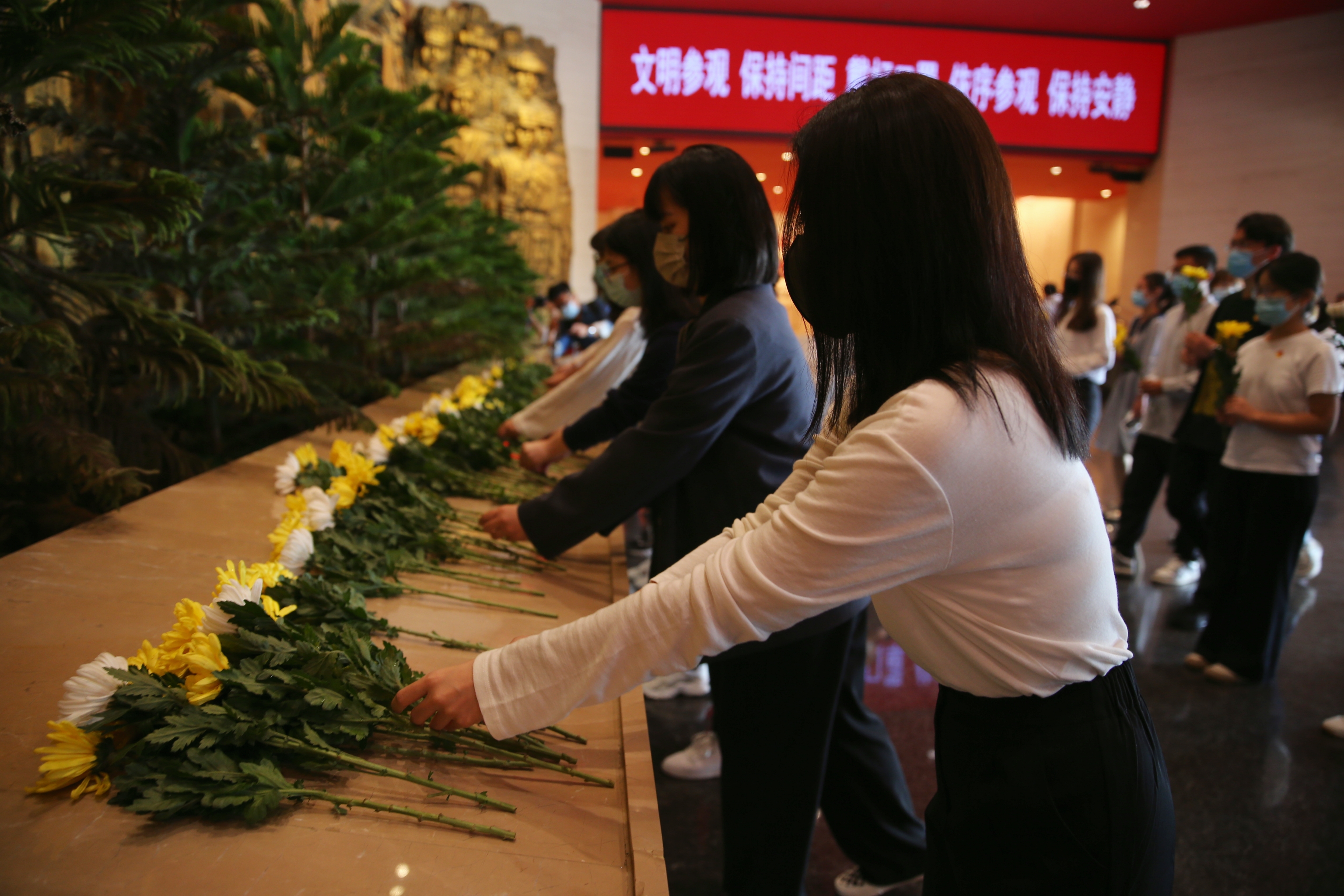 在九·一八事变爆发90周年之际,师生受邀参加抗战馆向抗战英烈献花活动。一缕菊香寄追思,在庄严肃穆的氛围中,外院师生在“铜墙铁壁”雕像前鞠躬并献上鲜花,表达对革命先辈的崇高敬意与无限追念。