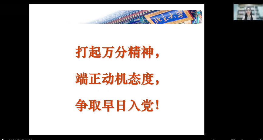 李淑静老师讲述的以仲跻昆先生、外院多语种翻译团队和朱睿智师姐等为代表的北大优秀共产党员的先进事迹,同样对学员们产生了极大的鼓舞作用。特别是去年疫情期间应运而生的外院多语种翻译团队,许多成员就是大家身边、现就读于各个语言专业的师兄师姐、师弟师妹。疫情爆发后,在院党委的领导下,百余名学生志愿者积极加入海外物资和防疫文件的翻译工作,并秉持着认真负责的态度严格校对、反复修改、广泛宣传,让外院人虽不能白衣披甲,却也可以用语言能力投身防疫一线。这种发挥专业特长、脚踏实地为人民服务的精神,正是共产党员历久弥新的品质之一。与此同时,仲跻昆先生的敢为人先与初心坚守,以及朱睿智师姐的大爱无疆与大局意识,也引发了学员们对优秀共产党员特征的深入思考。