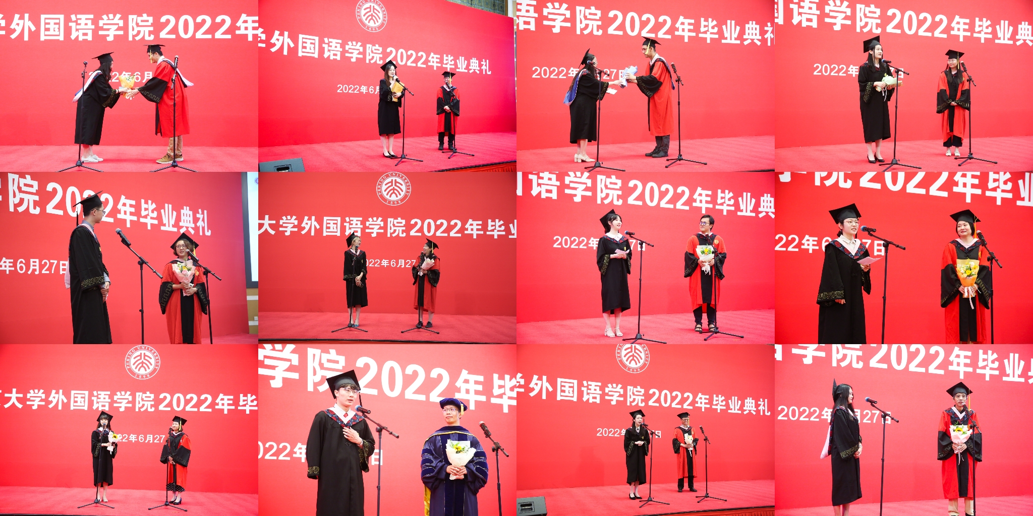 四年的燕园时光转瞬即逝,回首一路上收获的温暖,老师的教诲与关怀是每位同学十分宝贵的回忆。在毕业之际,同学们以自己的方式表达对老师们最诚挚的感激之情,2022届硕士毕业生李玉青主持感谢师恩仪式。12个专业的教师和学生代表一一上台,共诉师生之间的真挚情感。