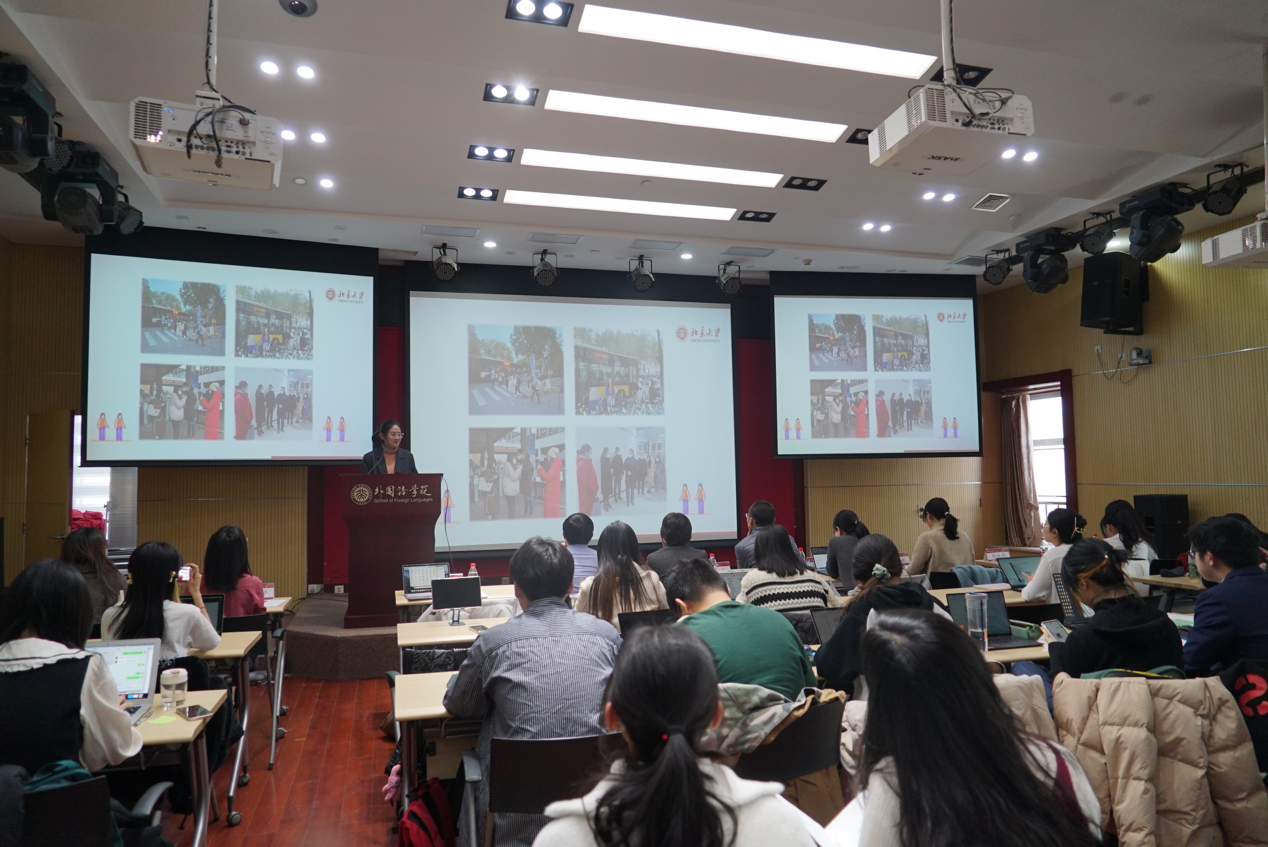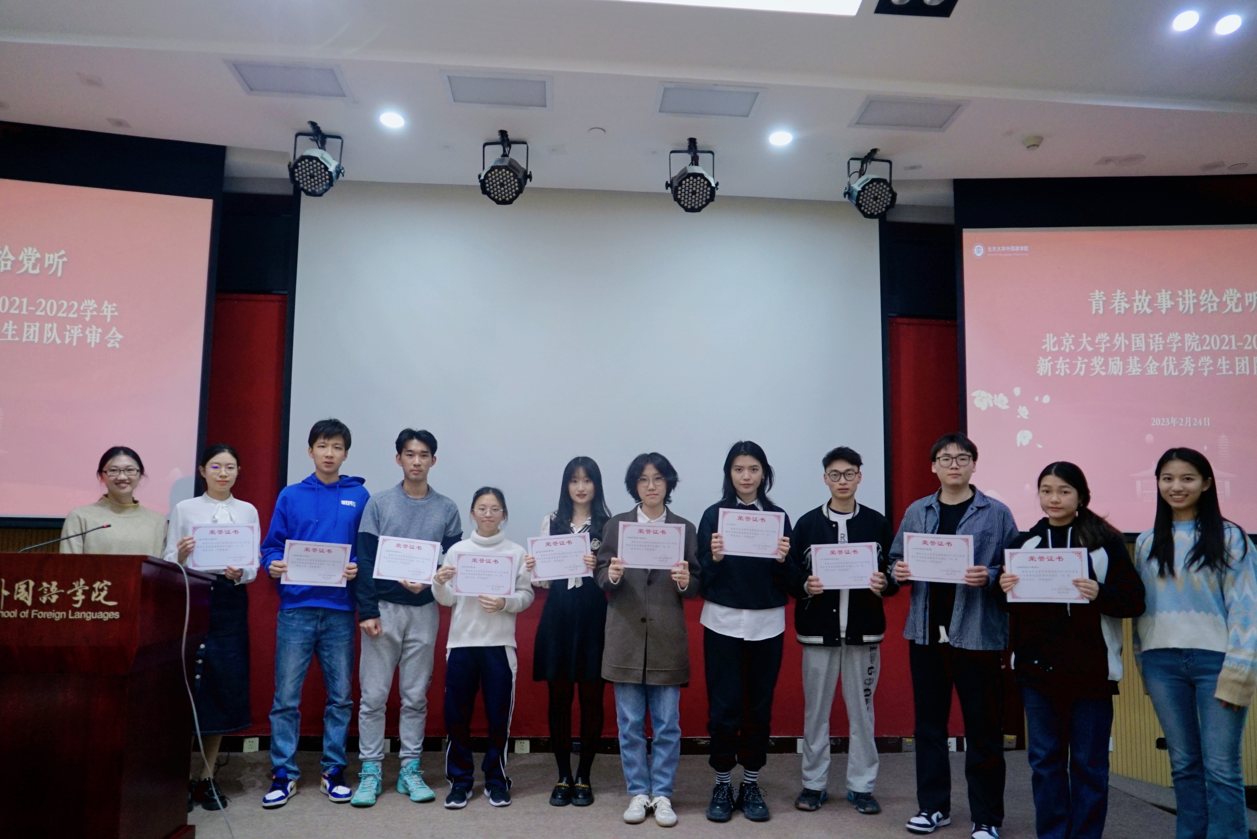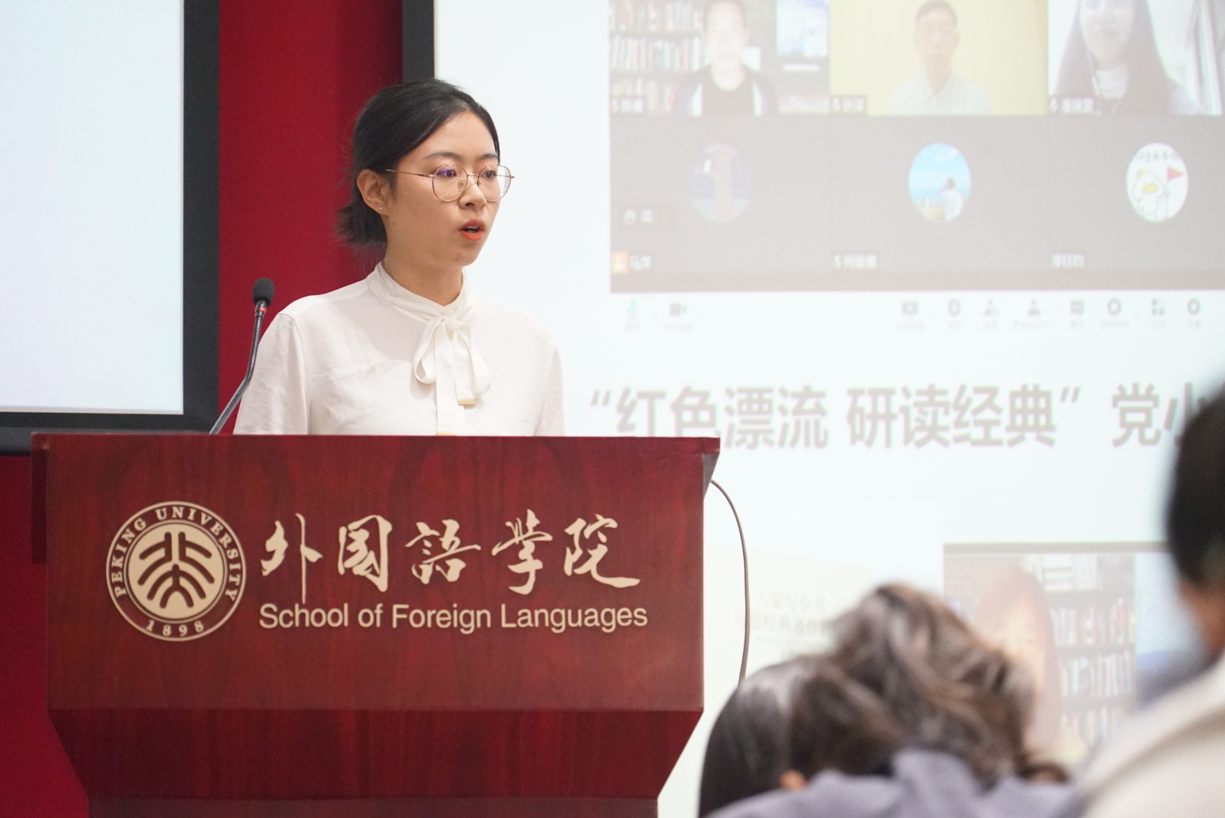 本科生第三党支部、朝韩语研究生党支部、亚非研究生党支部、英语研究生党支部、2019级俄语本科生团支部、2019级西班牙语本科生班、2020级蒙古语本科生班、2021级俄语本科生班等团队讲述了他们以党建带团建、团建促班建,开展思政引领、社会实践、专业学习等各具特色的活动;外院男子篮球队、女子篮球队、女子排球队、男子排球队、羽毛球队则展示了他们在训练场上挥汗如雨、在赛场上奋力拼搏的进取精神;“一福”老人英语班团队、疫情防控志愿服务队则秉持乐于助人、无私奉献的精神,用实际行动诠释外院人的担当作为;32楼307宿舍、万柳2区506A宿舍、万柳2区506C宿舍则分享了她们温馨多彩的宿舍生活,宿舍不仅是同学们生活起居的场所,也是共促学习成长的和谐家园;此外,外院辩论队在赛场上唇枪舌战的风采,新媒体中心采写部精心撰写的精彩文案,北大剧社汇集灵感、内涵丰富的戏剧艺术也成为此次答辩评审会的亮点。